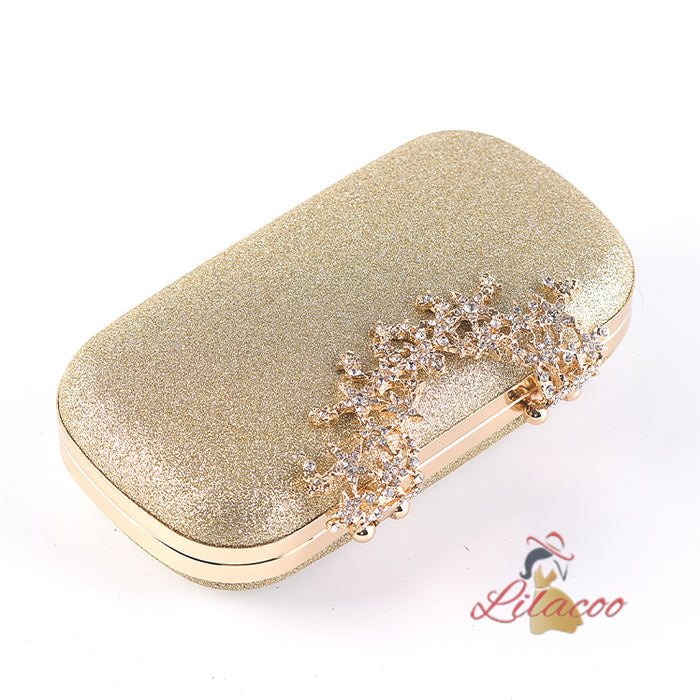 Presenting an exquisite gold handbag that promises to elevate your style to new heights. The handbag features a shimmering gold exterior that exudes luxury and sophistication. What sets this handbag apart is the stunning floral crystal embellishment on top, which adds a touch of elegance and sparkle, making it perfect for special occasions. The delicate chain strap offers versatility, allowing you to carry it as a clutch or wear it over your shoulder. Inside, the handbag is designed to hold all your essentials securely, with a spacious interior that ensures you have everything you need at your fingertips. The high-quality materials and attention to detail in the craftsmanship guarantee durability and longevity, making this handbag a worthy addition to your collection. Whether you’re heading to a wedding, an evening gala, or a stylish party, this handbag is sure to make a lasting impression. Embrace the glamour and sophistication that this gold handbag brings to your wardrobe.