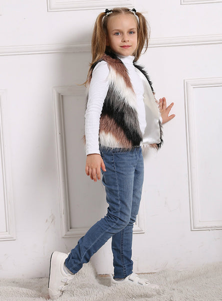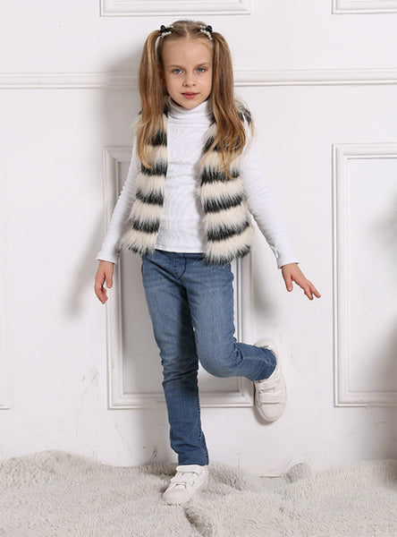 Girls' Short Casual Fur Winter Waistcoat