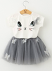 Cartoon Kitten Printed T-Shirts+Net Veil Dress