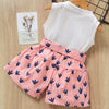 Girls Bow Cotton T-shirt+Printed Shorts Two-piece Set