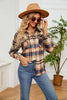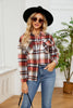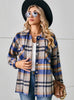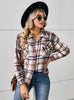 Button Lapel Loose Long Sleeve Plaid Woolen Coat