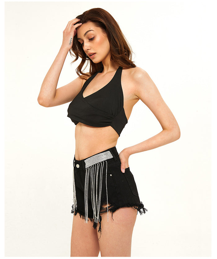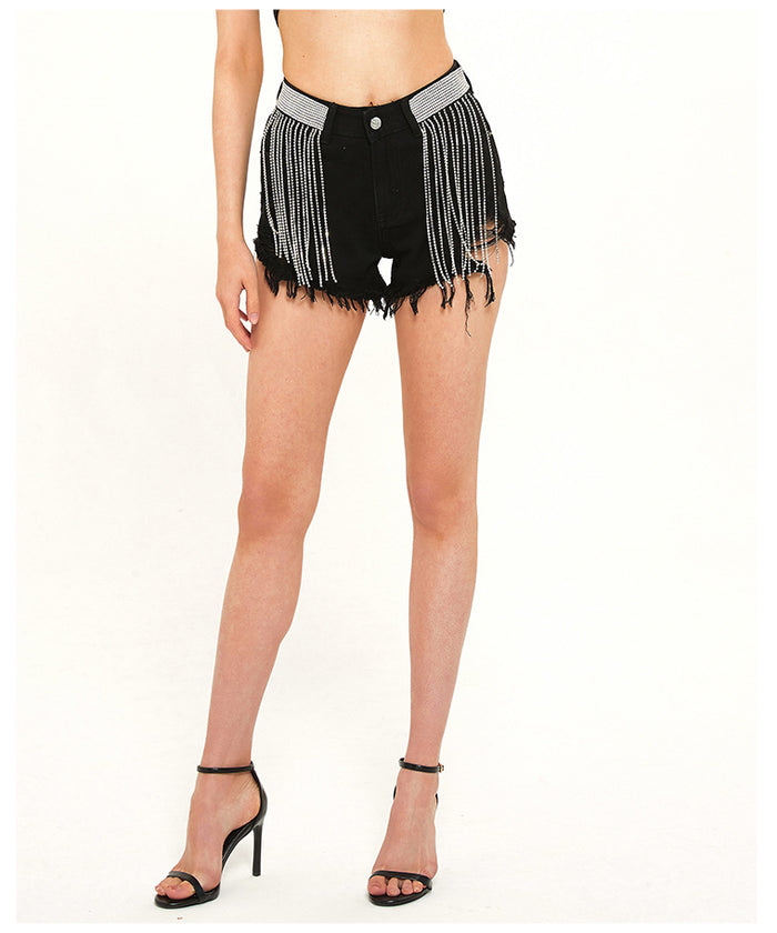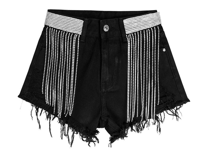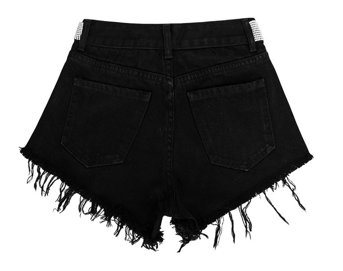 Make heads turn this season with our Cotton Raw-Hem Shorts with Rhinestone Detailing. A unique blend of comfort and glamour, these shorts are all about making a statement. Crafted from durable cotton, they are designed for longevity and day-long comfort. The raw hem and functional pockets add a rebellious edge, while dazzling rhinestones elevate your style. No stretch, no sheerness—just fabulousness.
