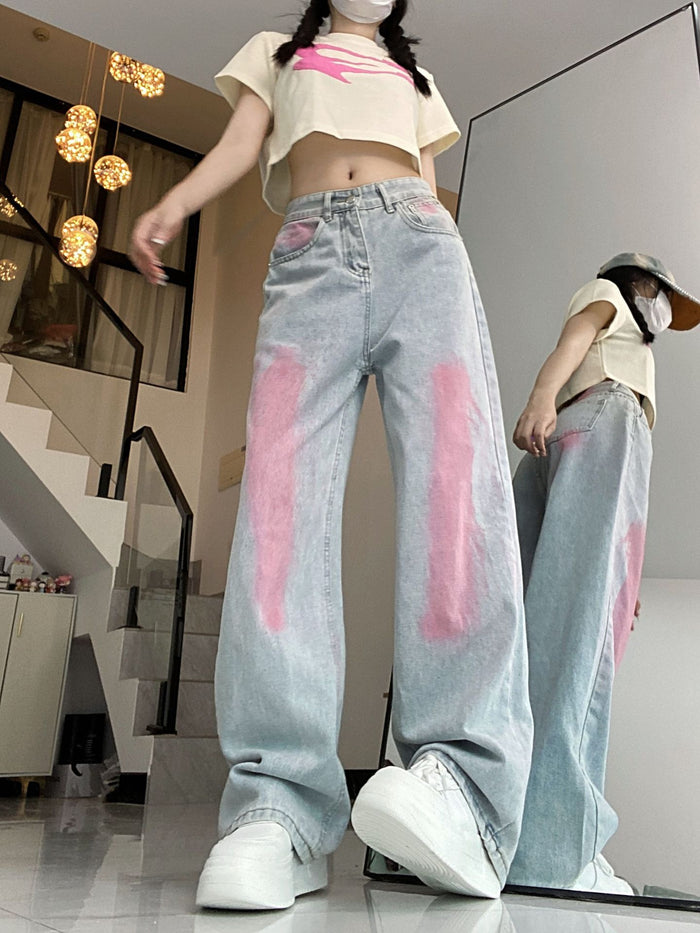 As a testament to the fearless spirit of modern street fashion, these black distressed jeans are for those who make the sidewalk their runway. With rips and frayed edges that speak to a rebellious soul, these jeans embody the raw edge of urban life. The high-waisted fit flatters the midsection, while the wide-leg cut offers a dramatic silhouette. These are jeans designed not just to be worn, but to be experienced. Ideal for pairing with a bold crop top or an oversized hoodie, they’re a canvas for self-expression in the most unapologetic form.