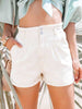 High Waist Semi-elastic Hemmed Denim Shorts