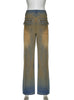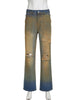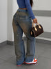Hole-washed High-waisted Straight Jeans