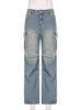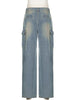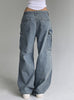 Pleated Low Waist Pocket Straight Jeans