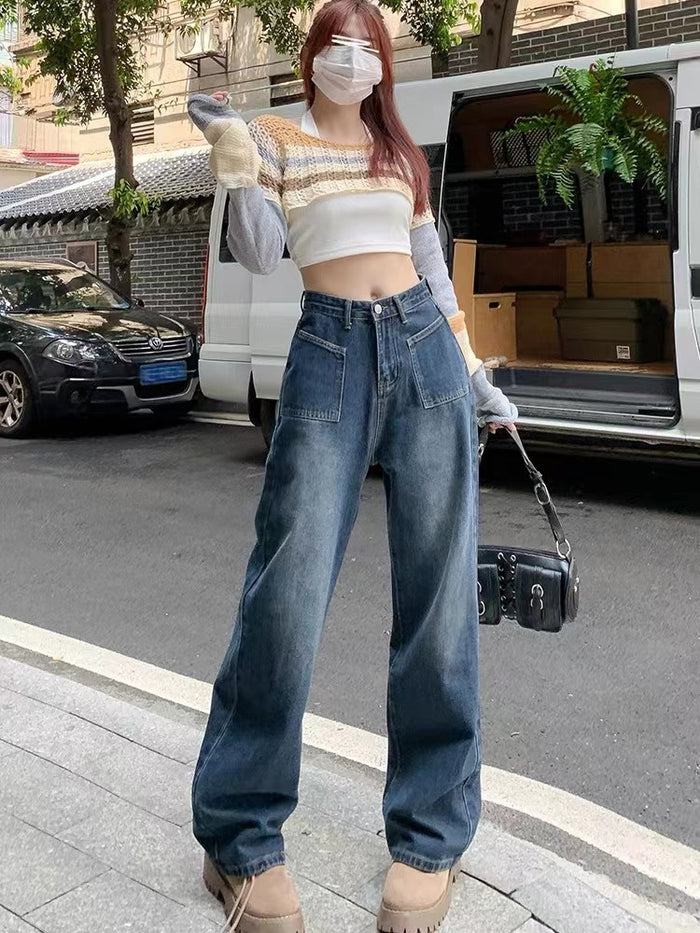 Retro Blue Straight High Waist Jeans