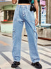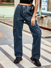 Retro Elastic Waist Denim Casual Pants