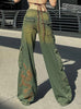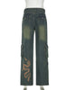 Retro Embroidered High Waist Zipper Pocket Jeans
