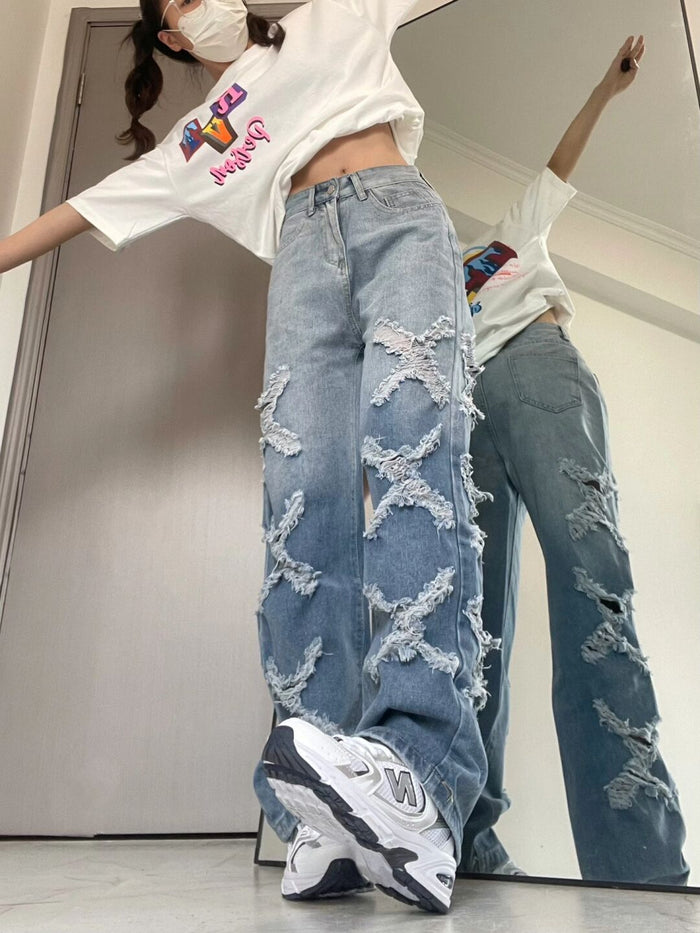 Retro High Waist Holes Jeans