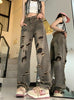 Retro Hole Loose Straight Jeans