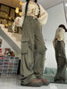 Retro Loose Big Pocket Army Green Pants