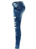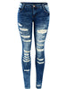 Rise Skinny Distressed Washed Stretch Denim Jeans