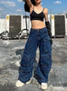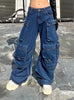 Wide Leg Stitching High Waist Pocket Jeans