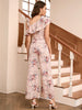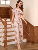 Printed Diagonal Shoulder Flounce Jumpsuit