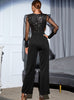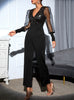 Sexy Mesh Long Sleeve Sequined Spliced Jumpsuit