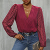 Spliced Long-sleeved Gauze Perspective Jumpersuit