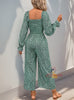 Square Collar Bubble Sleeve Wide-leg Long-sleeved Jumpsuit