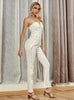 Women Casual Loose Wide-leg Pants V-neck Jumpsuit