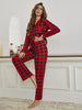 Red Plaid Shirt Long Sleeve Pants Pajama Set