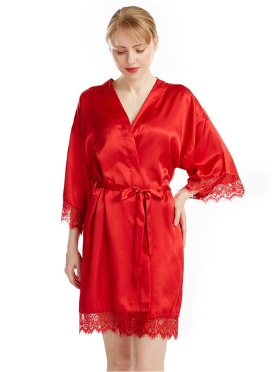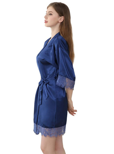 Sexy Silk Lace Cropped Sleeves Home Bathrobe