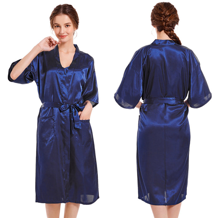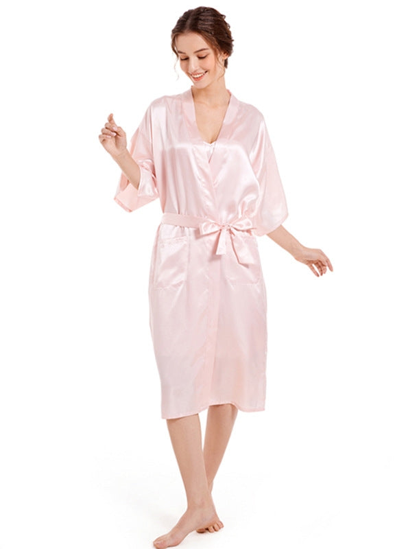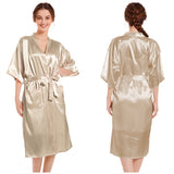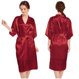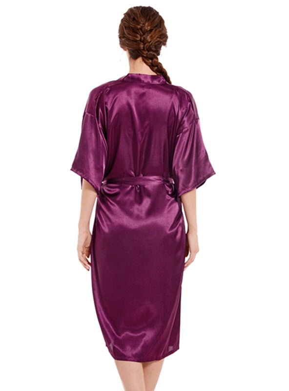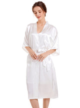Free yourself from the ordinary with this elegant satin nightgown. Made from premium satin, this nightgown feels incredibly soft and smooth, providing a luxurious experience every time you wear it. The classic white color adds a touch of timeless elegance, making it a versatile addition to your sleepwear wardrobe. The loose, relaxed fit ensures maximum comfort, allowing you to move freely and sleep peacefully. The V-neckline and kimono-style sleeves give it a chic and sophisticated look, while the matching satin belt allows you to adjust the fit to your preference. This nightgown is perfect for any season, offering a lightweight feel that keeps you cool in the summer and provides just enough warmth in the cooler months. Whether you’re lounging at home or getting ready for a restful night’s sleep, this nightgown will make you feel pampered and stylish. Experience the ultimate in comfort and elegance with this beautiful satin nightgown.
