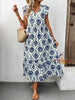 Loose Deep V-neck Printed Long Dress