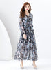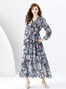 V-neck Lantern Sleeve Long Retro Print Dress