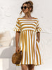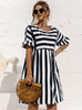 Cute Loose Striped Print Ruffles Sleeves Dresses