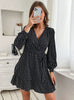 V-neck Lace-up Polka Dot Long Sleeve Dress
