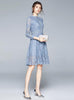 Blue 3/4 Sleeve Collar Openwork Lace Dress