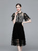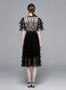 Bow Round Neck Lace Short Sleeve Mesh Cake Dress