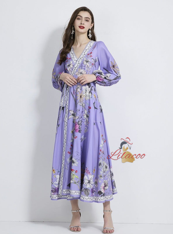 Simplify your search for elegance with the Lilac Floral Wrap Maxi Dress, a stunning combination of beauty and practicality. This dress features a vibrant lilac base adorned with intricate floral prints, evoking a sense of springtime charm. The wrap design with a V-neckline not only enhances your silhouette but also ensures an adjustable, personalized fit. The long puff sleeves add a touch of sophistication, while the flowing skirt offers graceful movement. Perfect for weddings, brunches, or outdoor gatherings, this dress transitions seamlessly between casual and formal settings. Pair it with silver accessories and heels to complete the look. Its lightweight and breathable fabric guarantees comfort all day, making it as functional as it is fashionable. Add this versatile piece to your wardrobe for a timeless look that never goes out of style.
