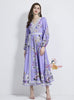 Cross-neck Floral Print Lace-up Ruffled Dress