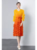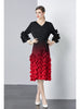 Folding Wooden Ear Ruffled Slim V-neck Gradient Dress