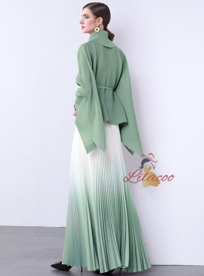 Gradual Lace-up Jacket+Smudged Pleated Skirt Suit