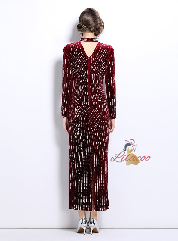 Heavy Industry Hot Drilling Slim Velvet Dress