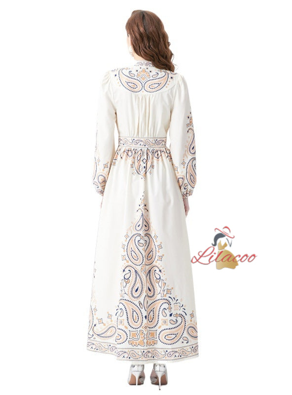 Showcasing intricate paisley patterns, this royal blue Lilacoo dress radiates elegance. The button-down front adds functionality, while the long sleeves ensure a polished look. Crafted from high-quality fabric, it offers both comfort and sophistication. Pair it with subtle metallic jewelry to enhance its regal charm. Perfect for galas, evening gatherings, or formal settings, this dress adapts to any upscale event effortlessly. A stunning design that combines classic motifs with modern flair, it guarantees you'll shine at every occasion.