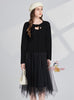 Hollow Bow Shiny Coat+Gauze Skirt Two-piece Set