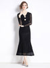 Hot Drilling Mesh Three-dimensional Flower V-neck Dress