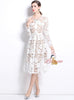 Lace Heavy Industry Beaded Short Sleeve Lapel Slim Dress