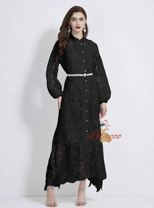 Shape your wardrobe with the Pink Lace Shirt Dress, a delicate and feminine piece perfect for various occasions. The intricate lace design adds texture and sophistication, while the button-down front and collared neckline offer a structured silhouette. With a cinched waist accentuated by a pearl belt, this dress flatters your figure while maintaining an air of grace. The long sleeves provide elegance and coverage, making it suitable for formal and semi-formal events. Crafted from breathable and lightweight fabric, it ensures comfort throughout the day. Pair it with silver or crystal accessories for a polished finish. Whether worn to brunch, a wedding, or an evening gathering, this dress embodies timeless beauty and versatility, making it an essential addition to your collection.