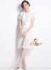 Lace Stitching Mesh Button V-neck Dress