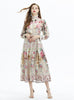 Lantern Sleeve Printed Ruffled Chiffon Two-piece Set