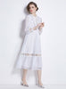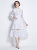 Lapel Lantern Long Sleeve Wooden Ear Hollow Dress