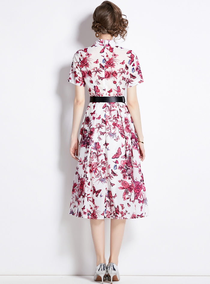 Lapel Short Sleeve Ink Print Big Swing Dress