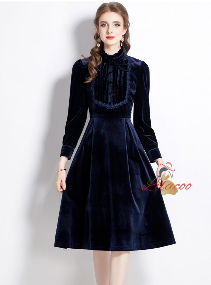 Long Sleeve Velvet Slim Dress