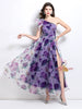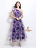 Oblique Shoulder Printed Gauze Dress