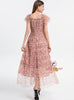 Off the Shoulder Puff Sleeve Leopard Print Gauze Dress