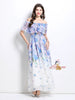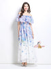 Off the Shoulder Ruffled Printed Chiffon Dress